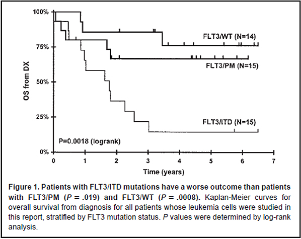 Impact of FLT3 mutation on the survival of AML patientsSource : Brown O. et al., Blood 104:1841-1849, 2004